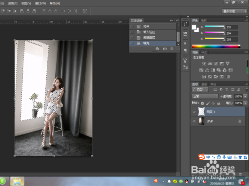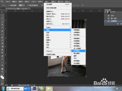 在该图层上依次执行“滤镜”-“恍惚”-“径标的目的恍惚”操作;