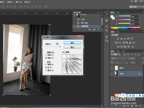 数目调至最大,恍惚方式设置为“缩放”,点击确定,这样光线结果就建造好了!