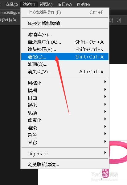 点击上方的【滤镜】选择【液化】。