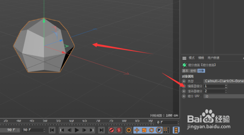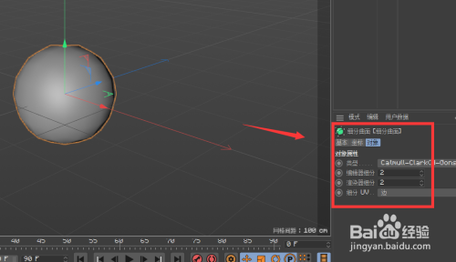 设置为父级今后,我们可以发现立方体酿成了一个球体,这是细分曲面所导致的结果,在界面右下角可以调整细分曲面的参数。