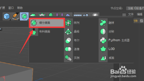 然后,我们可以在上方的东西栏中找到“细分曲面”东西的选项,点击可以进行应用。