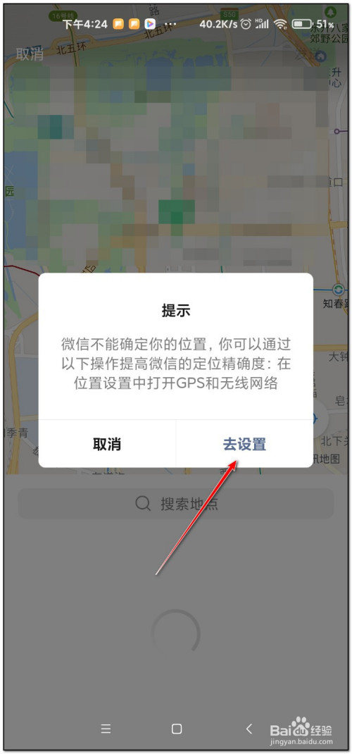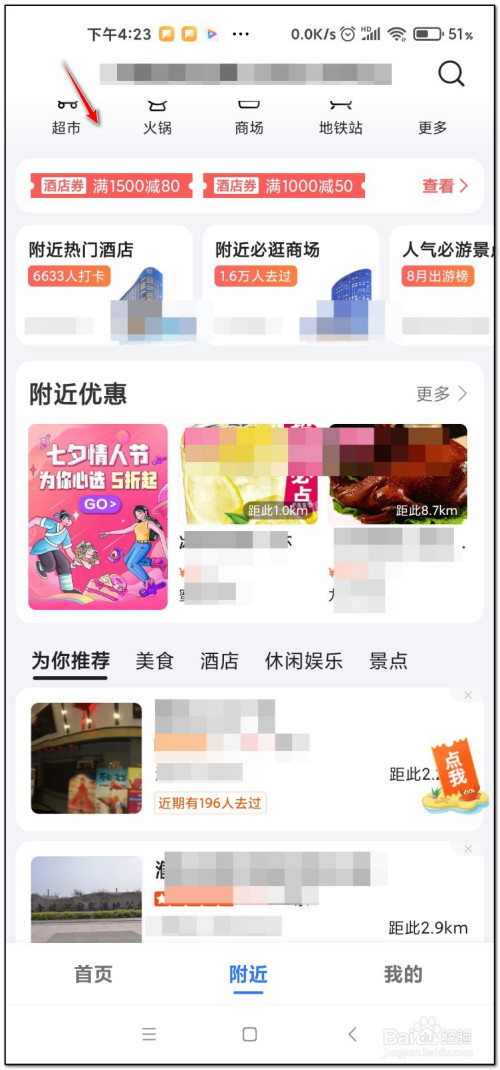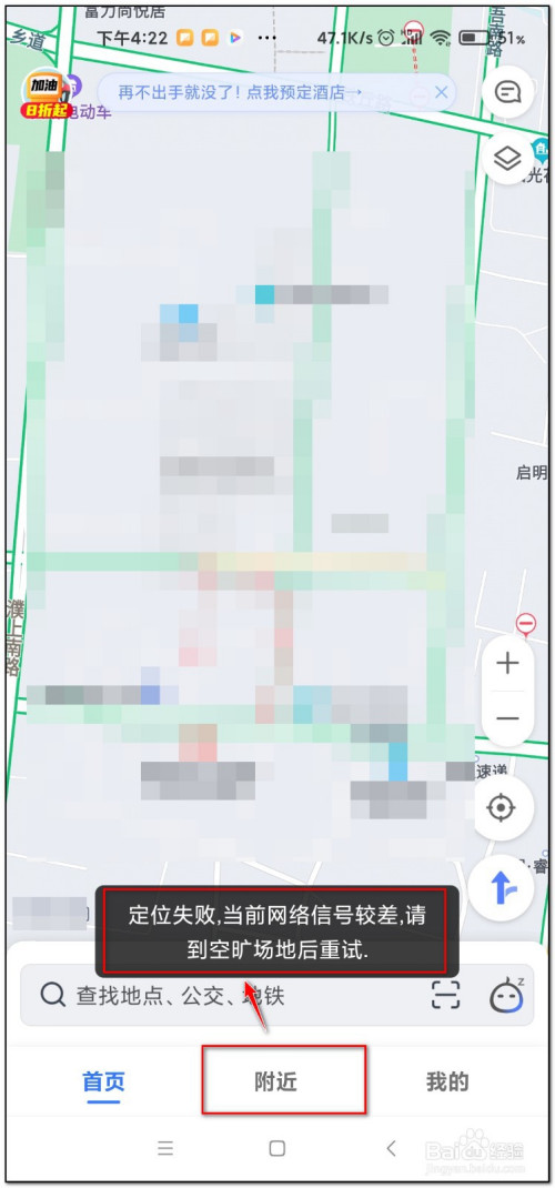 方式/步骤1 在行程中地图定位、搜刮四周商家