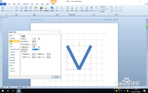第二步:鄙人拉列表中选择“线条”中的“肆意多边形”,参考网格线在Word页面绘制一个V字外形。