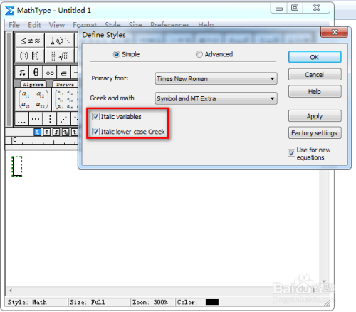 接着,勾选“斜体变量”与“斜体小写希腊字母”,具体如图所示: