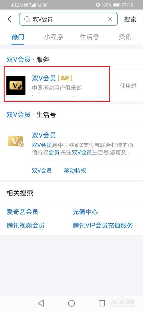 第二步下面来利用一下双V会员,打开支付宝首页,搜刮双V会员