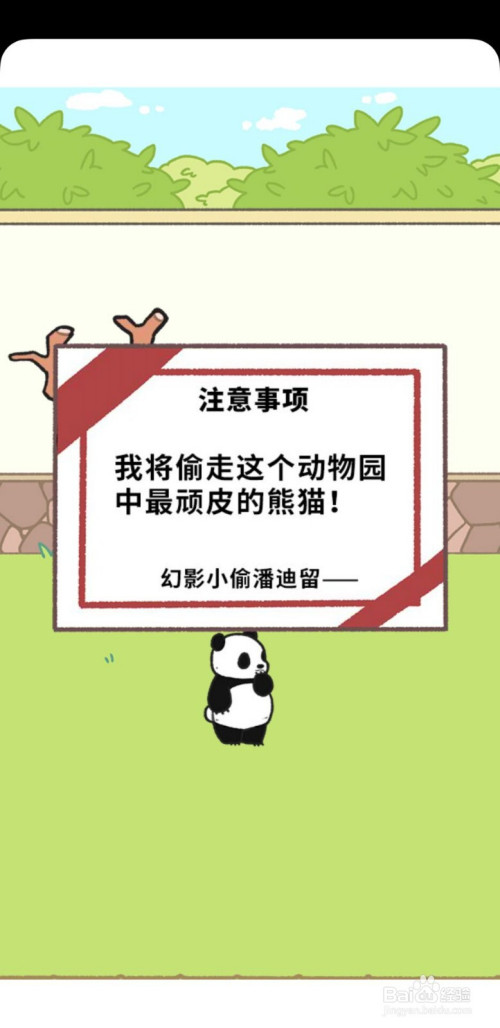 首先,我们在第1个场景中会看到左边的树上插着一张纸,点击那张纸,可以看清里面的内容——我将偷走这个动物园中最顽皮的熊猫,接下来,一个黑衣人就抱走了熊猫;