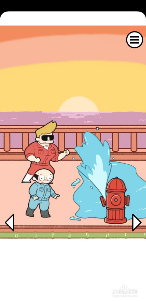 接下来,是一个喷水的消防栓拦住了去路,我们此次选择扳手,将其拖动蓝色衣服的豢养员的手中,就可扭紧消防栓,从而止住水柱,就可以继续进步了;