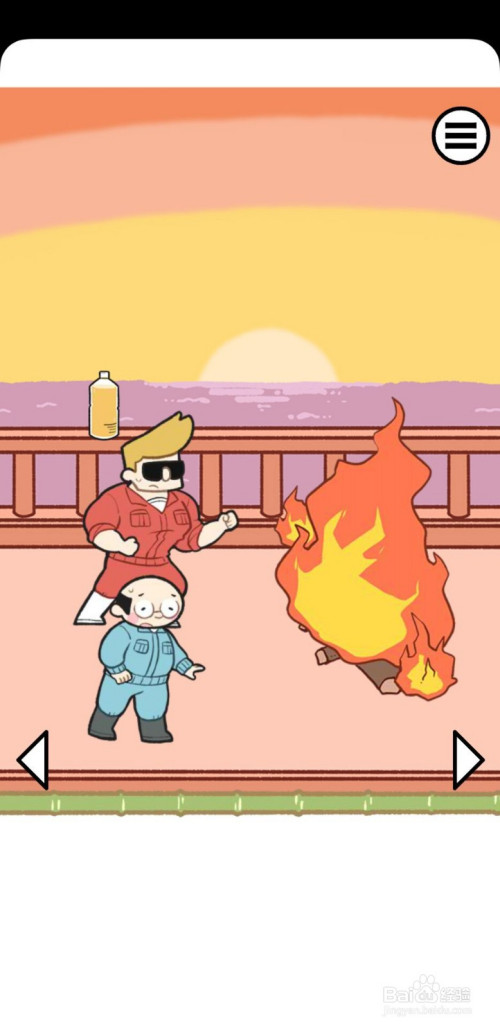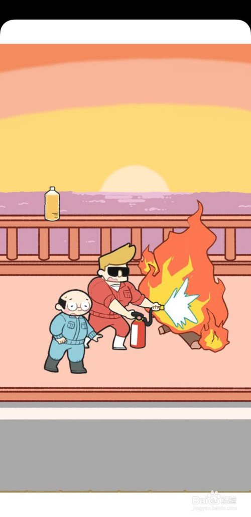 接着,我们碰到了一团火盖住了去路,我们同样切换到可获得道具的场景,选择灭火器,将它拖动红色衣服的豢养员的手中,他就会操纵灭火器毁灭那团火,就可以继续追赶了;