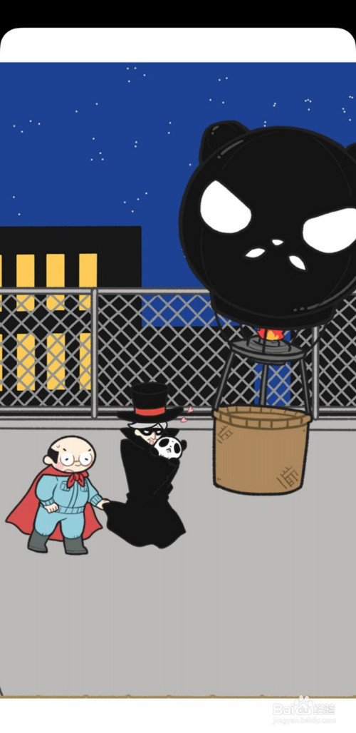 接着,我们追到了黑衣人,也获得了日常骚扰的熊猫人的帮忙下扎爆了黑衣人的热气球,合法熊猫失落落的危险之际;