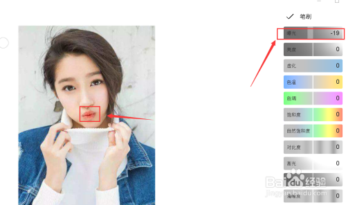 对着人物的唇部进行涂抹。