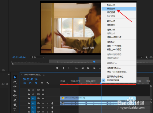 同样移动到片段的末从头至尾,右击选择标识表记标帜出点,键盘“O”键。