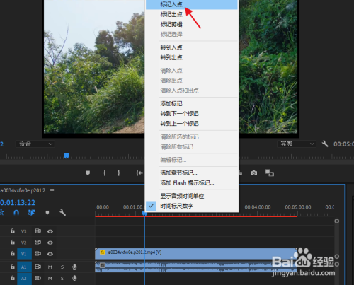 右击鼠标选择标识表记标帜入点,也可以利用键盘快捷键“I”。