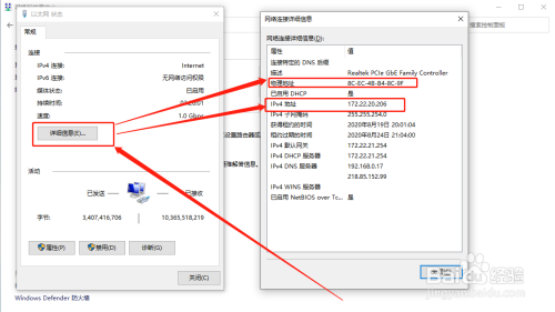 3、点击“具体信息”,即可查看到 ip 地址和 mac 地址