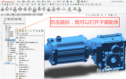 第五步:完当作闭幕特征以及保留文件后,这时辰去右击模子树里的文件名称,就可以看到“打开”文件的图标;然后选中需要打开的子零部件,将其打开;