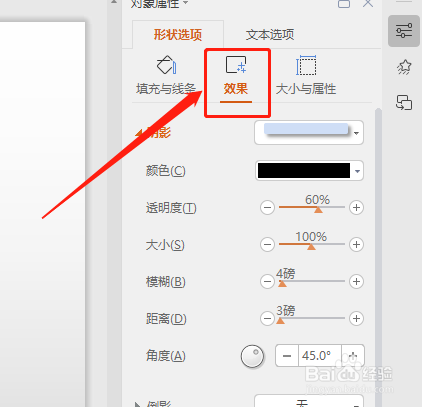 在右侧对象属性中,选择“外形选项”。如图: