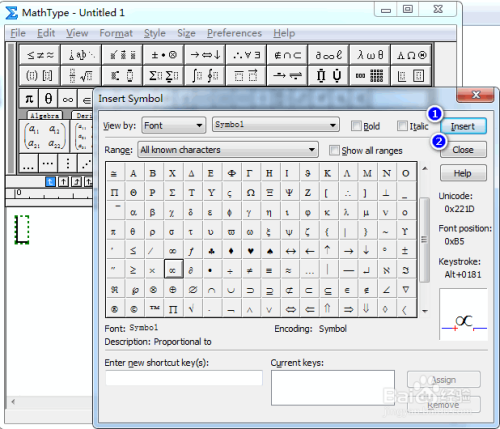 在符号面板中,找到并点中正比符号,具体如图所示: