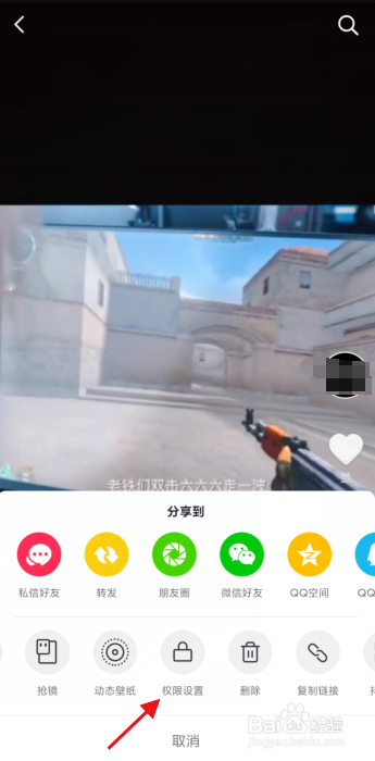 在弹出窗口中选择公开、老友可见或私密权限即可。
