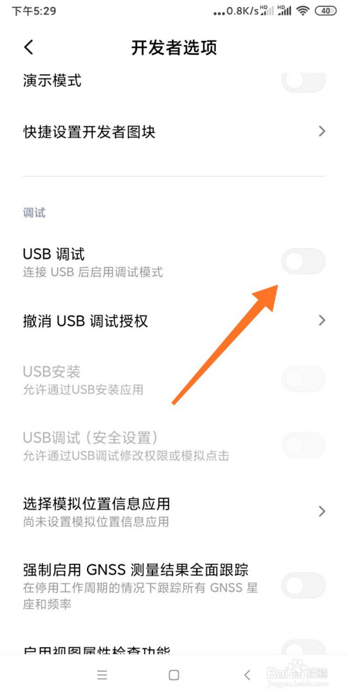 在调试栏面前目今选择点击按钮【USB调试】即可被打开。