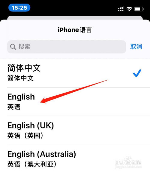 在说话列表内,点击英语的选项