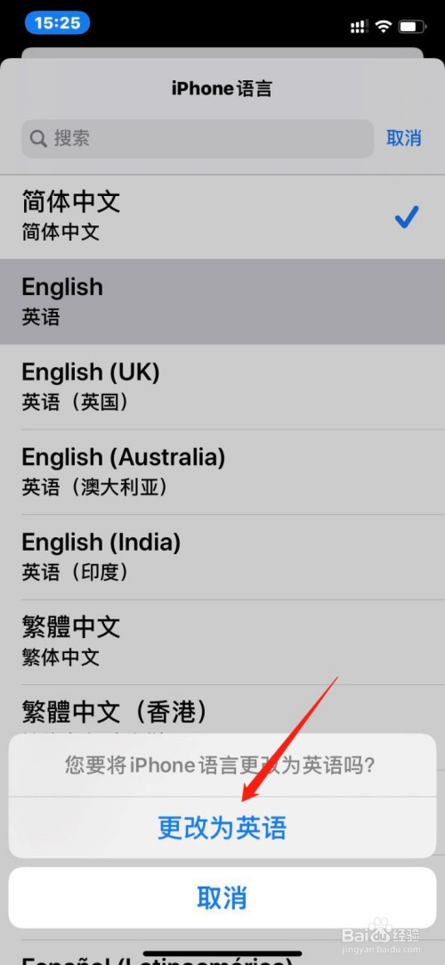 选择【更改为英语】的选项即可
