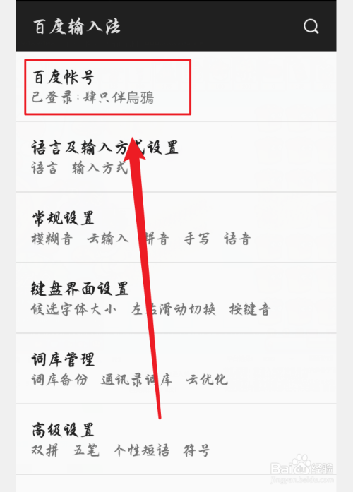 然后在设置中点击【百度帐号】选项。