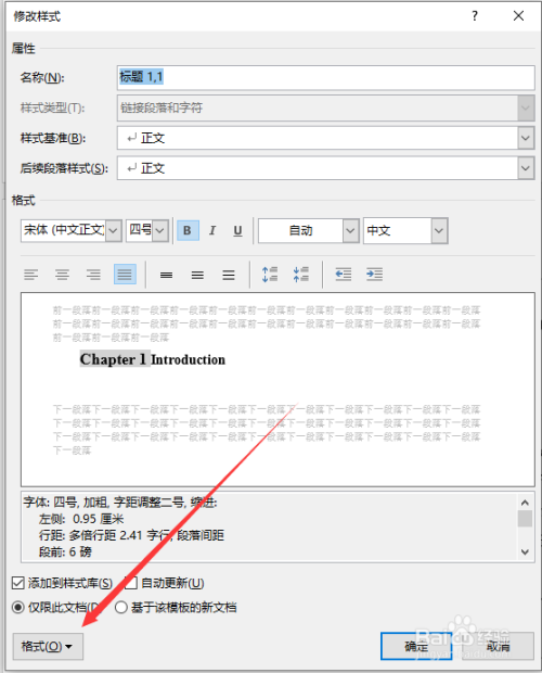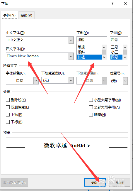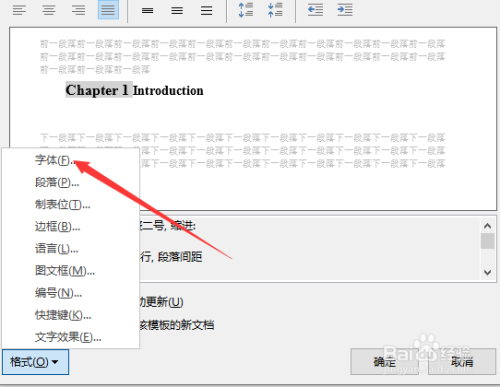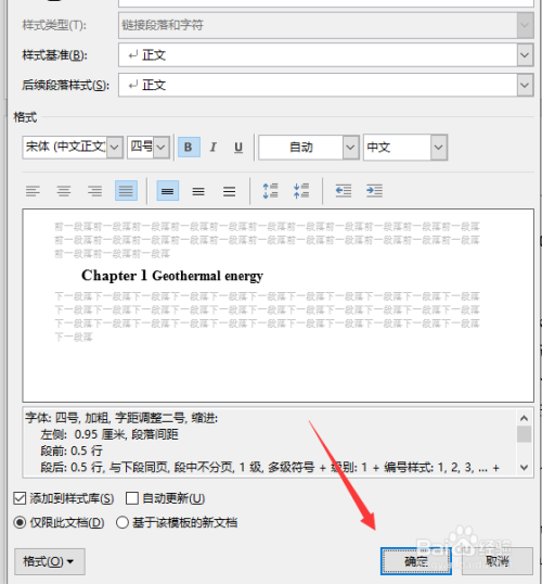 4、设置章题目的字体大小和类型点击【确定】选项。