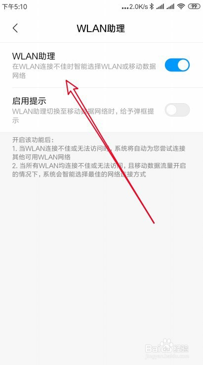 点击后再打开的页面,我们找到wlan助理的设置项