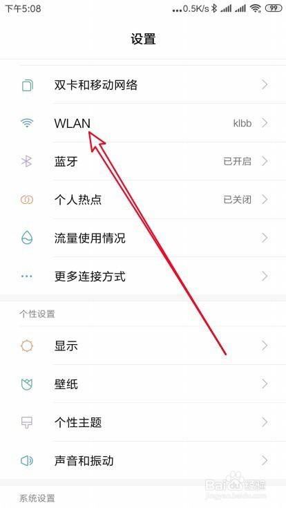 然后再打开的设置页面,点击wlan的菜单。