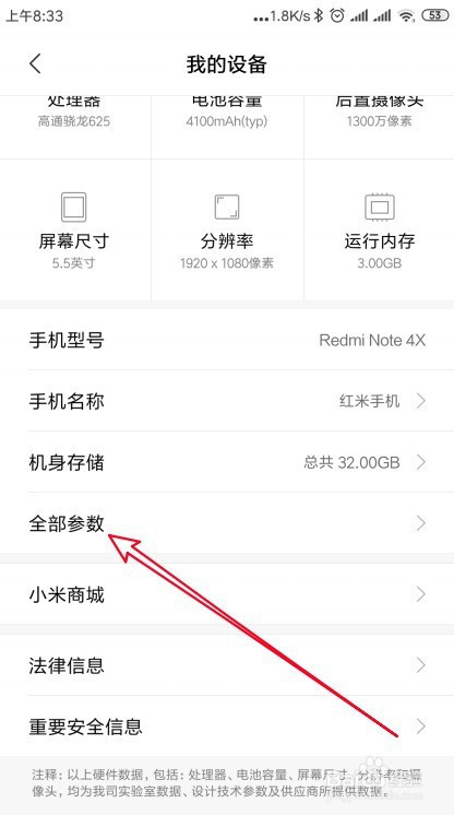 接着再打开了我的设备页面,点击全数参数的设置项。