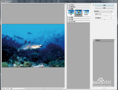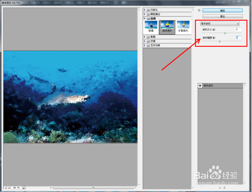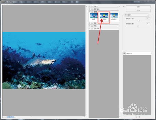 选择【海洋波纹】,按图示设置好【波纹大小】、【波纹幅度】的参数(如图所示);