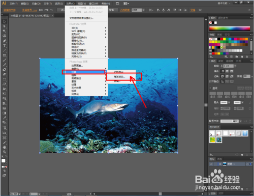 鼠标左键点击选中图片,点击【结果】-【扭曲】-【海洋波纹】,弹出海洋波纹设置栏;