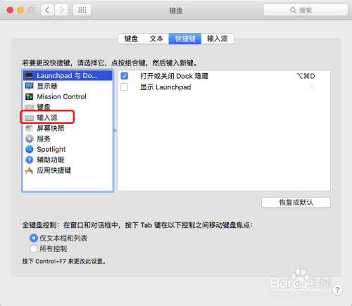 就会弹出‘快捷键’面板,之后鼠标左键单击‘输入源’图标,如图所示