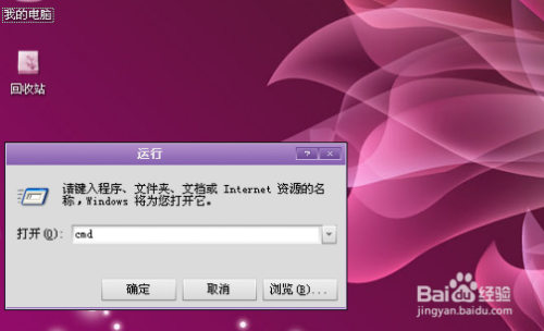 之后就会弹出运行窗口,键盘输入cmd,如图所示