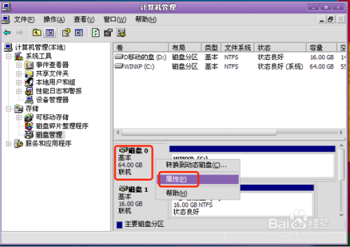 之后鼠标右键单击‘磁盘0’,弹出菜单,如图所示
