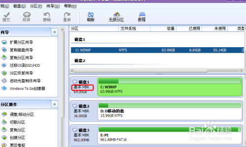 查看最后一列的GPT,若是有*号则为GPT,若是没有则为MBR,图片中是没有*号的所所以MBR,如图所示