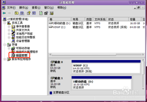 之后鼠标左键单击选择‘磁盘办理’,如图所示