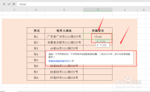 第二步,单位格中输入本次计较需要利用的函数1,=FIND,查看其利用法则,详情如下;