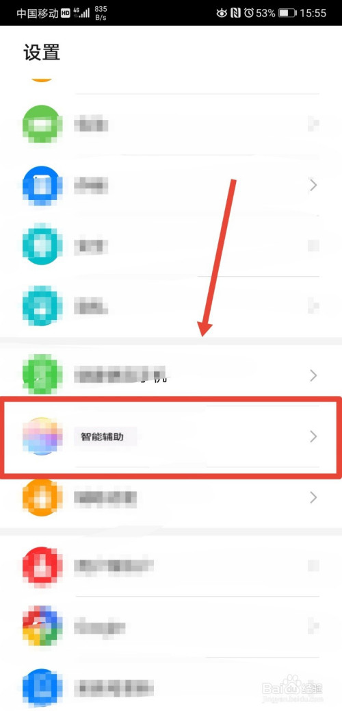 第三步,设置页面,找到智能辅助功能,点击进入;
