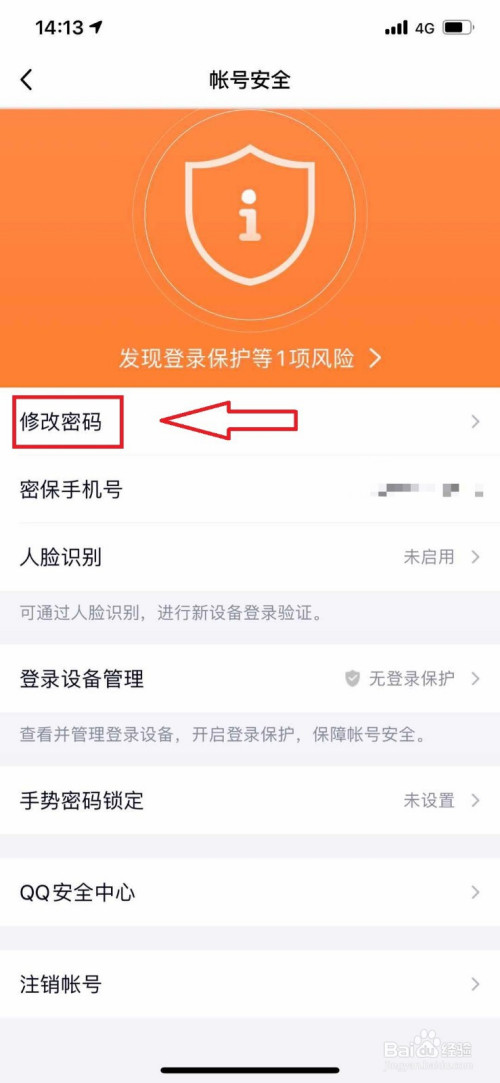 进入帐号平安的本家儿页面后,点击进入点窜密码。