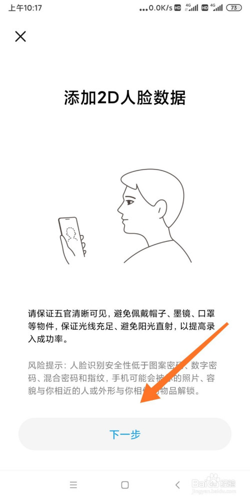 将镜头瞄准面部即可完当作识别录入。