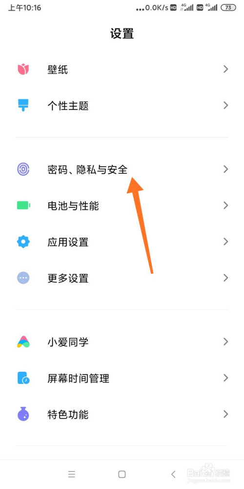 然后选择【密码隐私与平安】按钮点击打开。