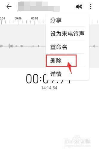 点击打开需要删除的灌音文件。