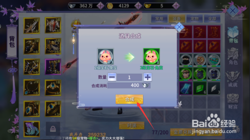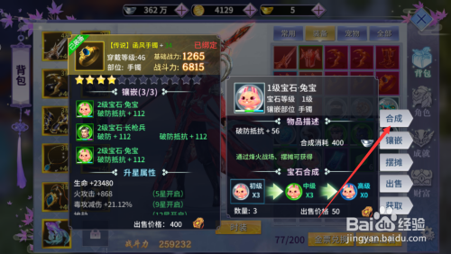 进入装备界面后,选择低品级宝石并点击“合当作”。