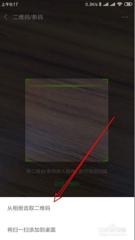 接下来在打开的页面,我们选择从相册选择二维码的菜单项。