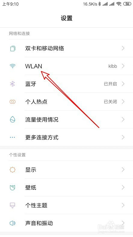 接下来在打开的手机设置页面,点击wlan的菜单。