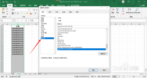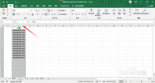 第一步:点击含有日期单位格的【整列】(例如下图【B列】)