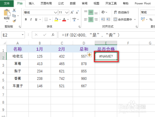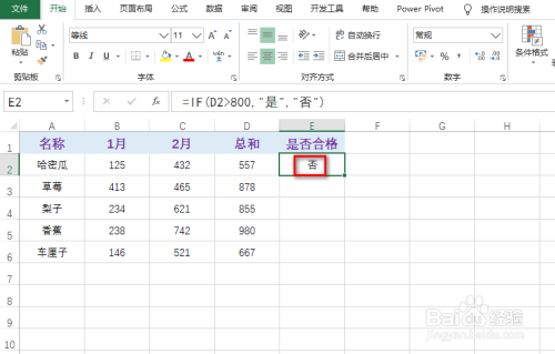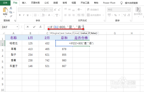 在一空白单位格中输入公式:=IF(D2>800,“是”,“否”),具体如图所示: