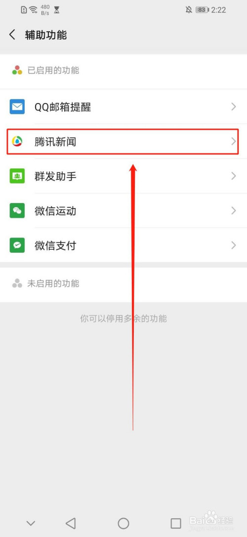 进入“辅助功能”界面后,点击“辅助功能”界面第二行的“腾讯新闻”,如图