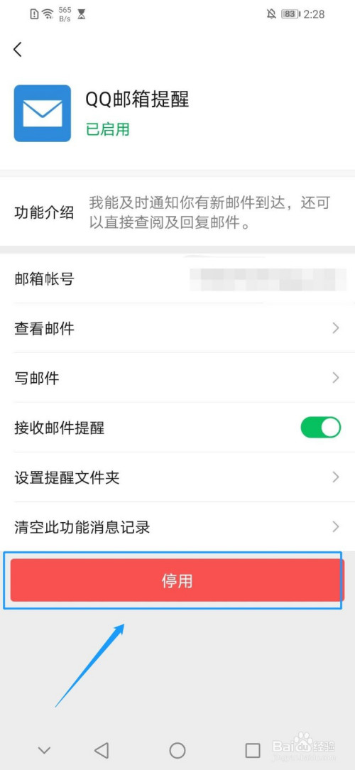 6.点击“辅助功能”界面第一行的“QQ邮箱提醒”