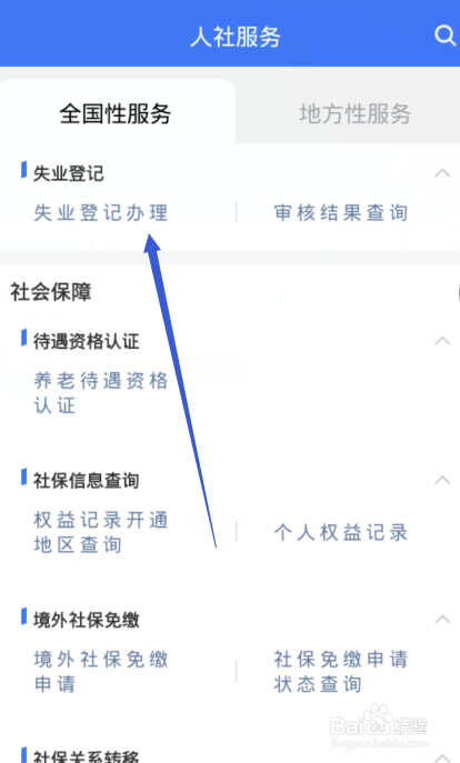 进入人社办事界面点击下方的【掉业挂号打点】选项。